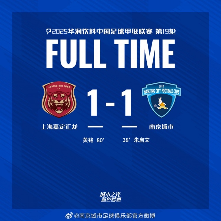 全场比赛戒指,南京城市客场1-1战平上海嘉定汇龙