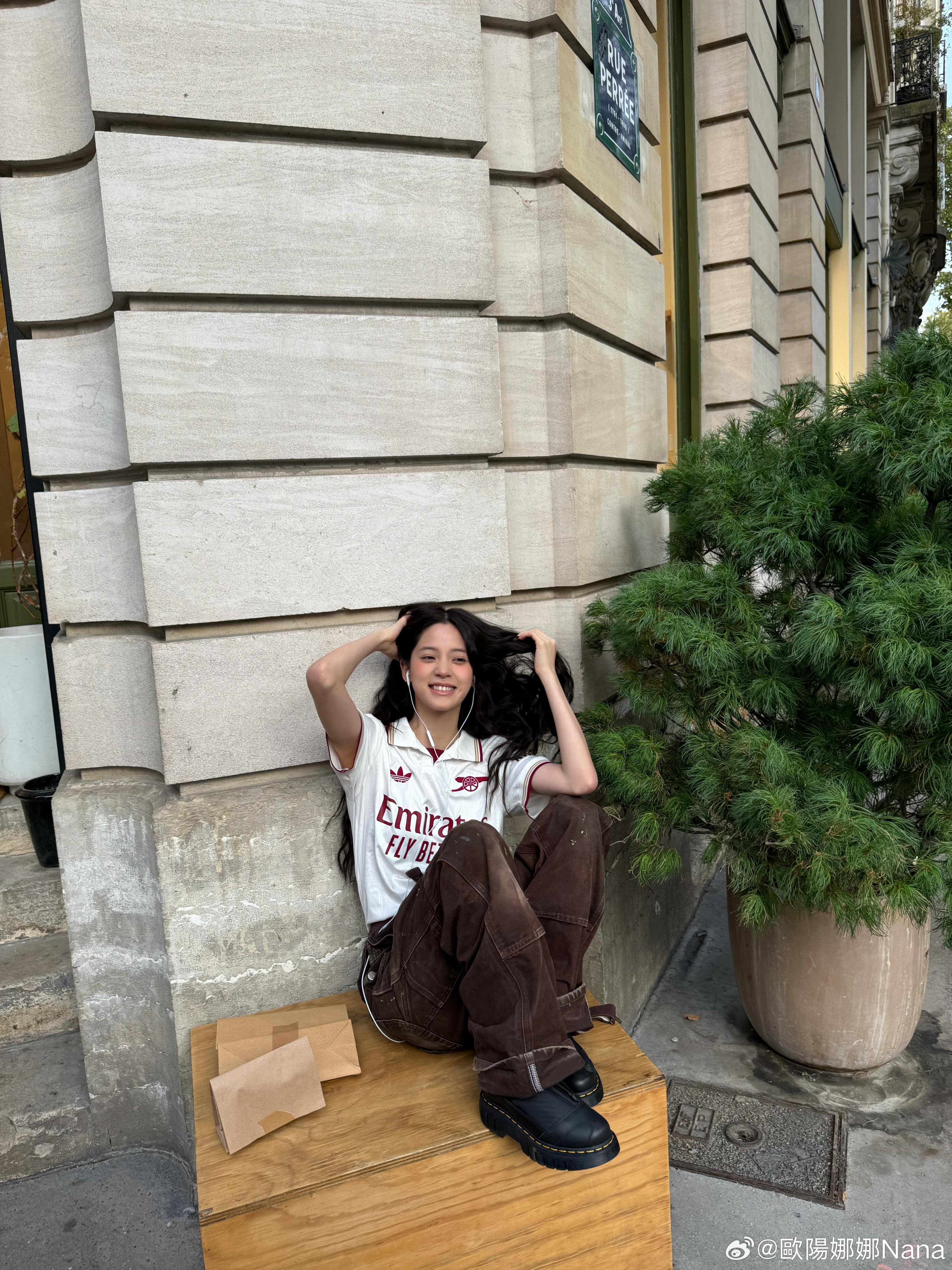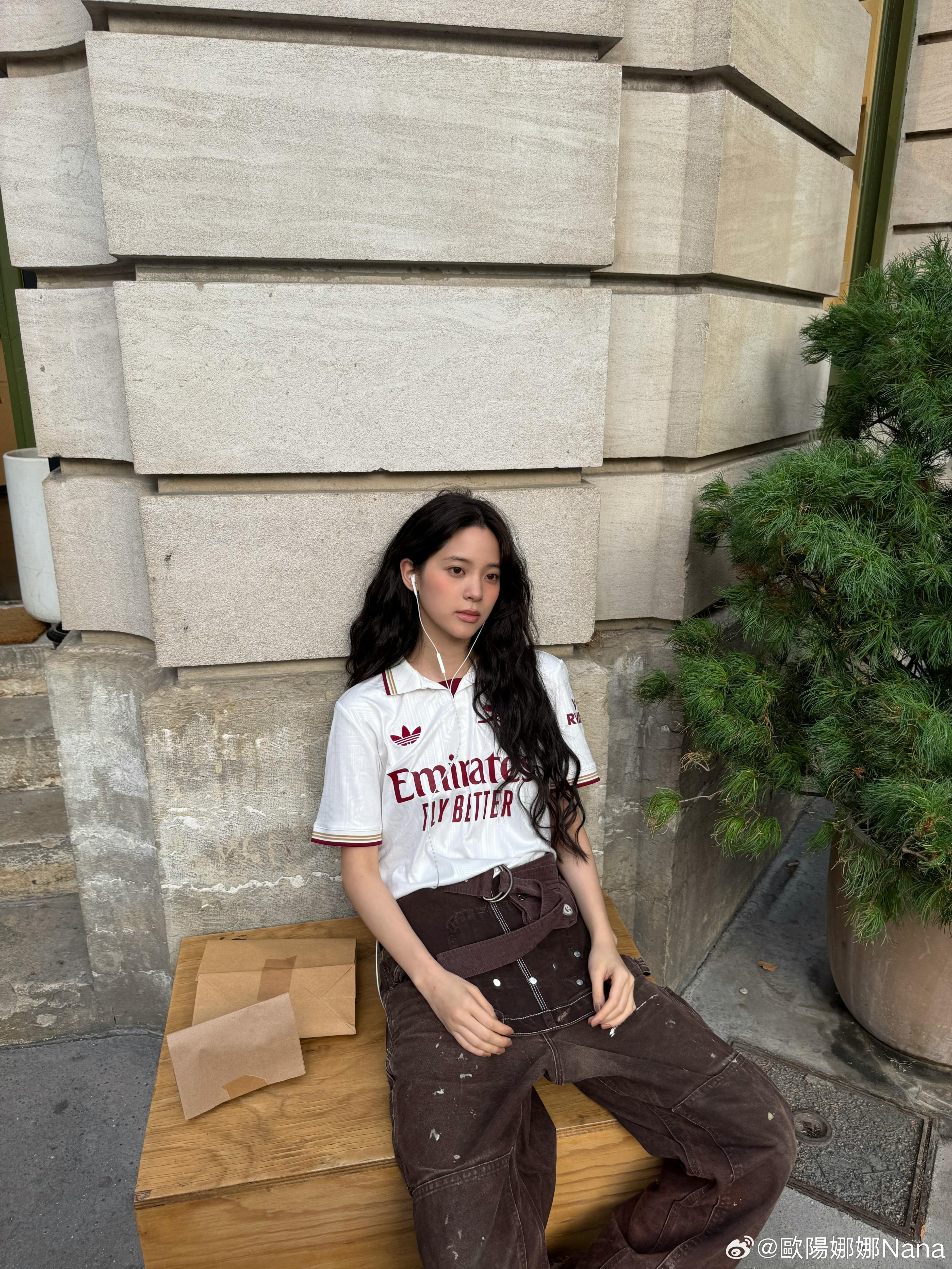 你亦然枪迷?欧阳娜娜穿阿森纳第二客场球衣,踱步巴黎街头