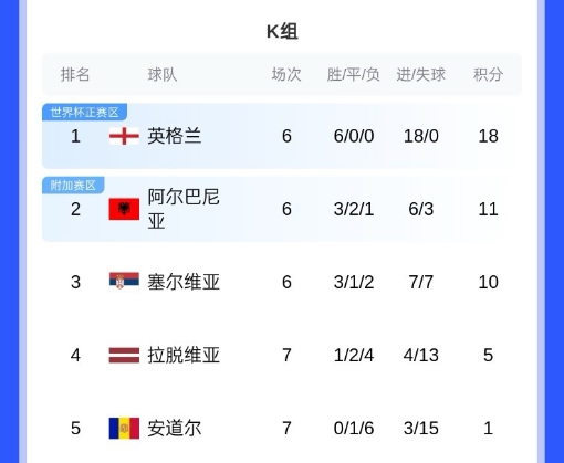 英格兰队如故提前两轮锁定了小组头名,阿尔巴尼亚和塞尔维亚将争夺小组第二的附加赛位置。本轮塞尔维亚若输英格兰且阿尔巴尼亚赢安说念尔,塞尔维亚将无缘附加赛。
