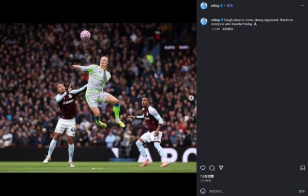 哈兰德社媒:贫寒的客场,稠密的敌手,感谢今天到场的每一位🙏