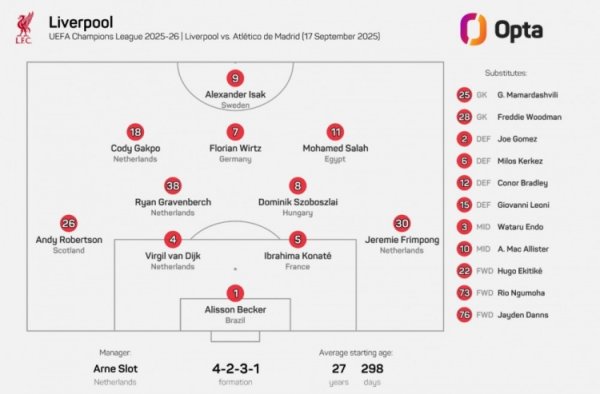 利物浦迎第418场主流欧战赛事,初次出现首发声威中无英格兰球员