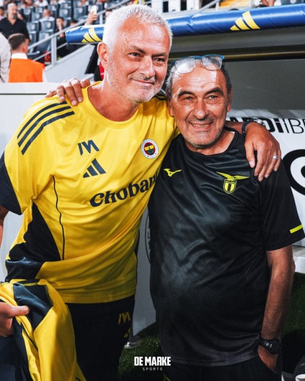 费内巴切友谊赛约战拉皆奥,穆里尼奥与萨里在赛前愉快合影眷顾