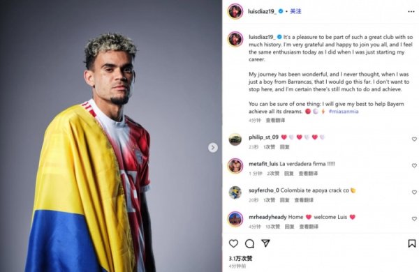 迪亚斯社媒操心加盟拜仁:深感红运,我将全力帮球队杀青统共梦思