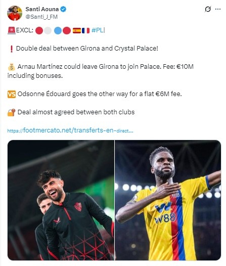 记者:赫罗纳与水晶宫结束交游,马丁内斯加盟英超&爱德华去西甲