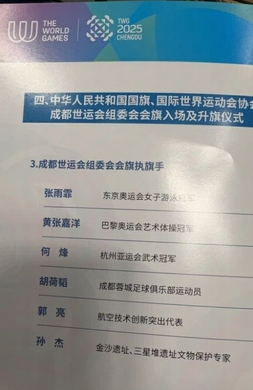 成都世运会今晚开幕,胡荷韬、张雨霏等将担任组委会会旗执旗手