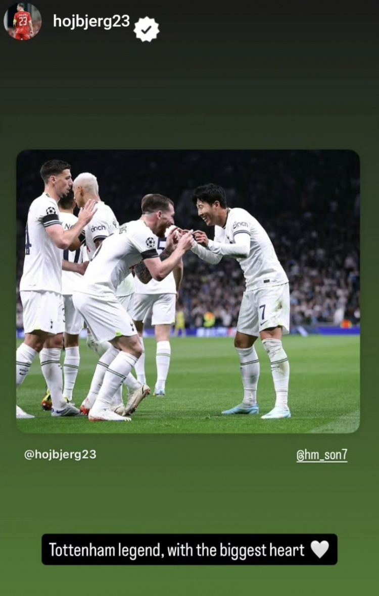 霍伊别尔社媒致敬孙兴慜:热刺传奇,拥有最伟大的心🤍