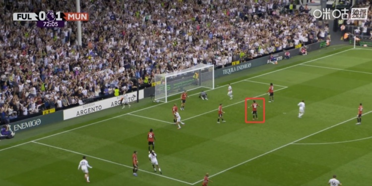 8月25日讯 曼联1-1战平富勒姆,第73分钟,史密斯-罗前插破门,原本在弧顶盯防的B费没有跟人,丢球后B费摊手抱怨后防线。