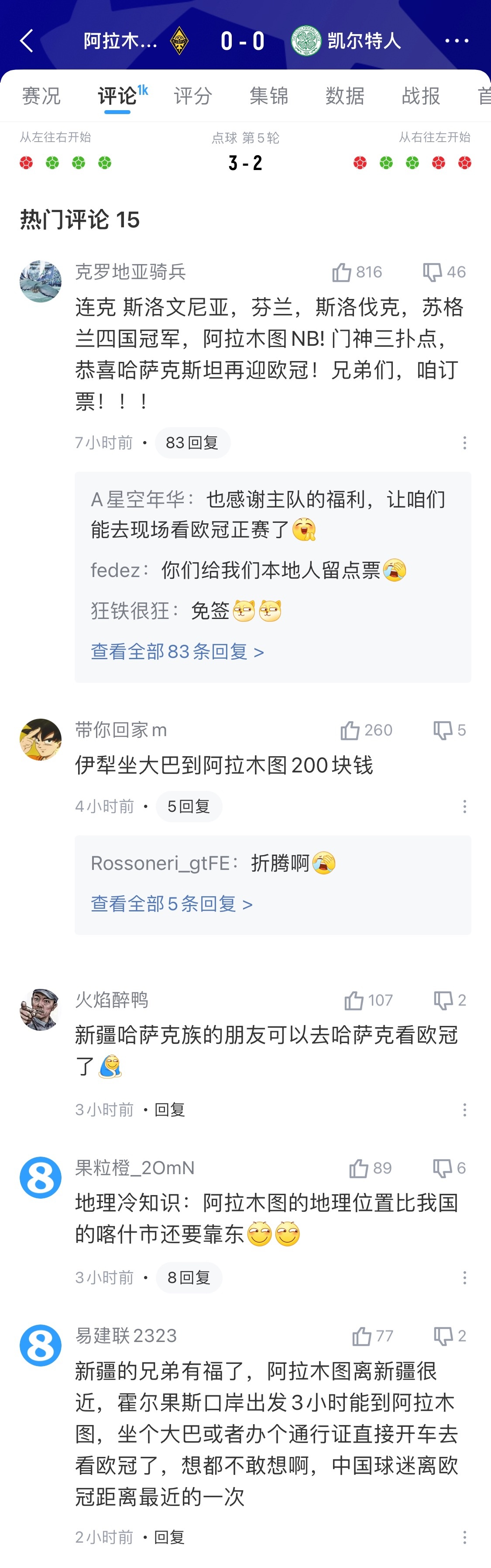 随着哈萨克斯坦球队阿拉木图凯拉特击败凯尔特人,队史首次闯入欧冠正赛,不少吧友已经热议起从新疆到阿拉木图看欧冠的路程时间。
