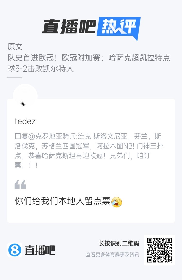 一位IP属地哈萨克斯坦、注册1741天的吧友现身评论区发话了:“你们给我们本地人留点票😂”。