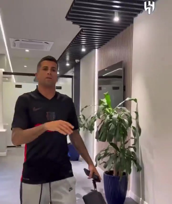 新赛季沙特联赛本周拉开帷幕,利雅得新月首轮对阵利雅得体育,在球队的季前备战中,坎塞洛身穿巴萨球衣抵达训练场。