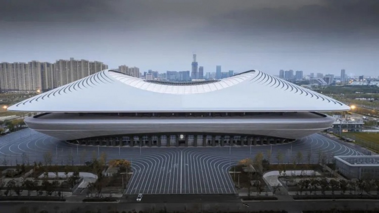 整体建筑外形则体现了西安方正恢弘的传统建筑特色,并且与现代专业球场动感线条融合,形成了“历史与现代对话”的视觉符号。
