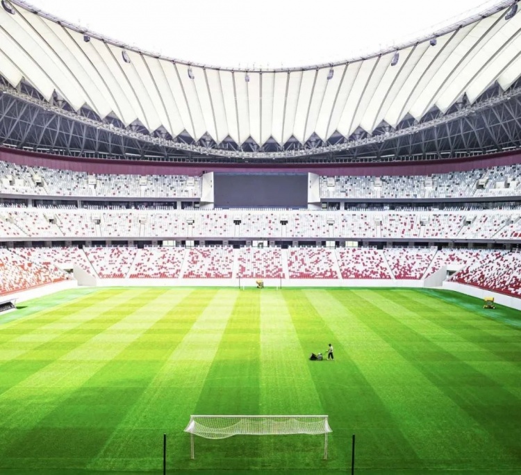 西安国际足球中心在全球首创双层铝网膜结构大跨屋顶,配套国际标准的通风加热草坪及360度均匀体育照明。内场采用经典马鞍形看台设计,还设置了国际顶级的声光电系统,能够为观众带来沉浸式的观赛体验。