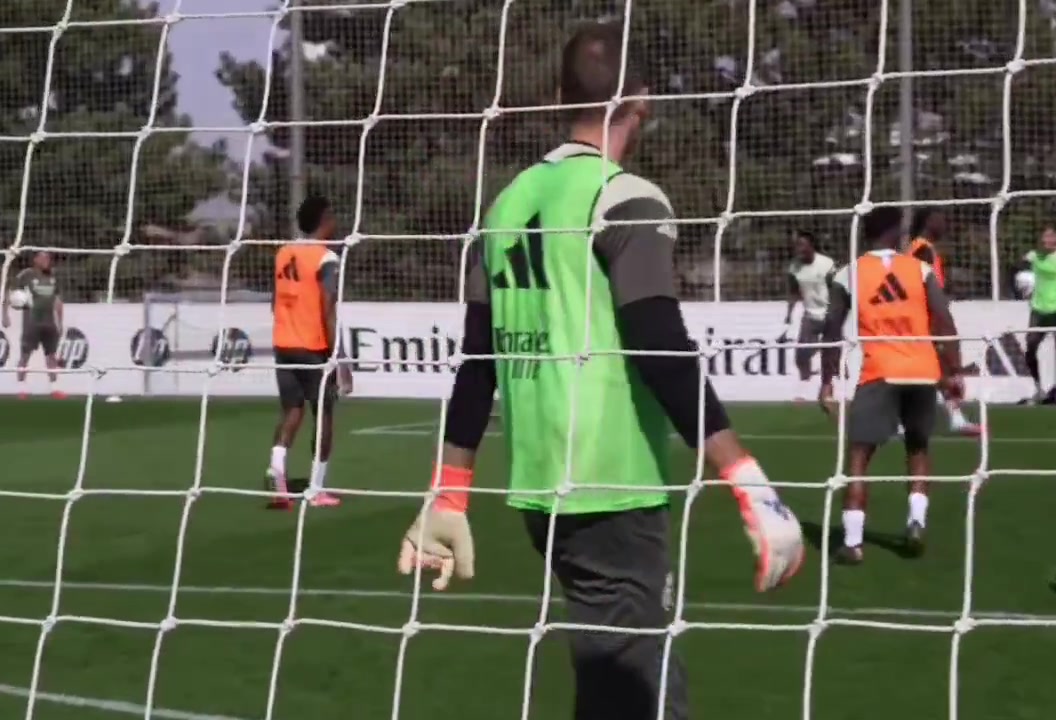皇马正在备战这场比赛,琼阿梅尼在训练中侧身勾射破门,技惊四座,队友纷纷惊呼。