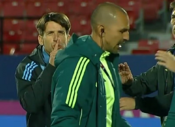 撞人引冲突!墨西哥U20助教指着鼻子骂,阿根廷U20主帅做闭嘴手势