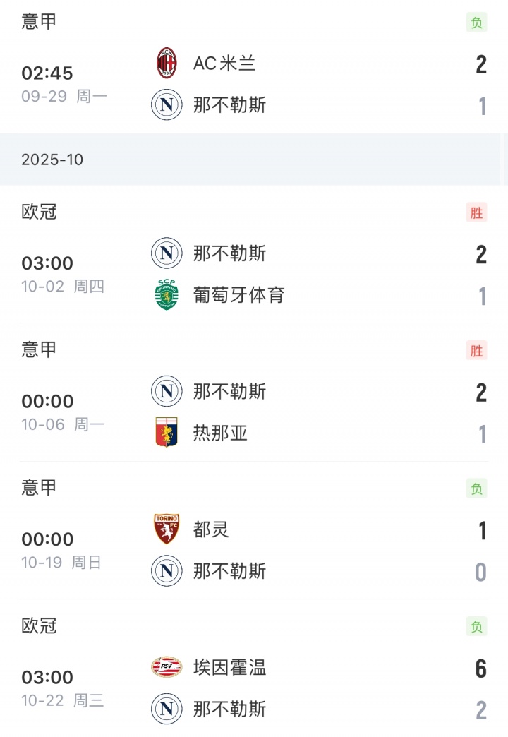 10月22日讯 欧冠联赛阶段第3轮那不勒斯客场2-6惨败埃因霍温,目前欧冠3轮2负暂排第22。