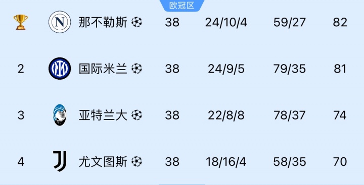 上赛季,孔蒂带领的那不勒斯未参加任何欧洲比赛,最终联赛24胜10平4负积81分领先身后国米1分夺得意甲冠军,并获得本赛季欧冠资格。