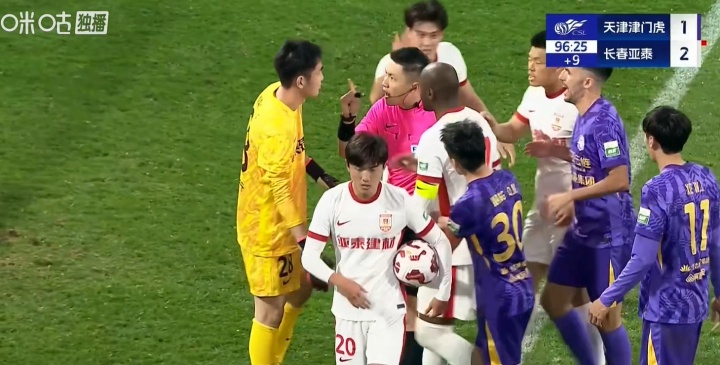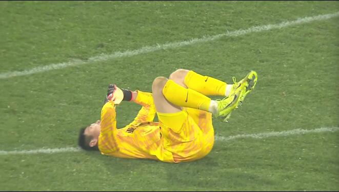白忙活!亚泰门将拖延时间染黄,随后示意抽筋被主裁指着鼻子警告