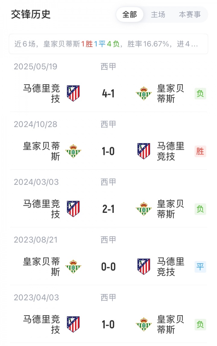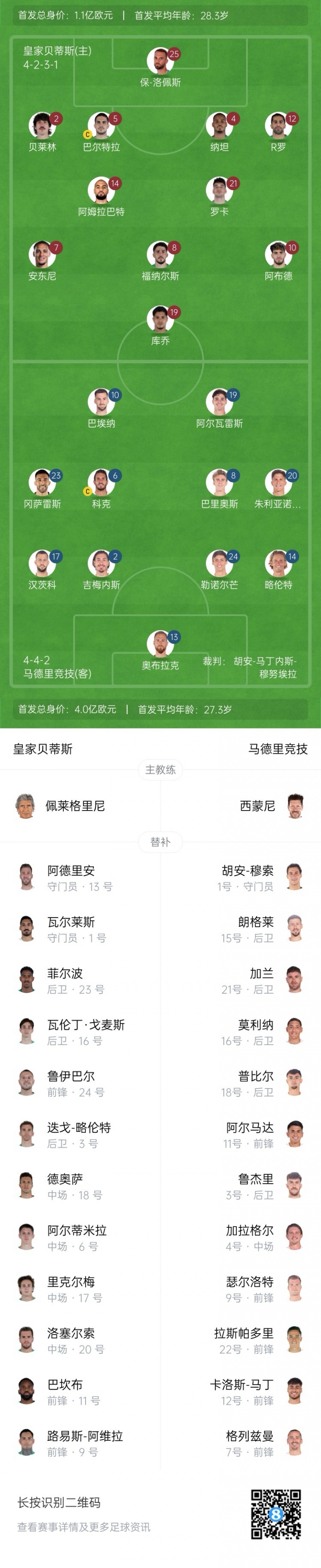 贝蒂斯vs马竞首发:安东尼pk阿尔瓦雷斯,朱利亚诺·西蒙尼出战