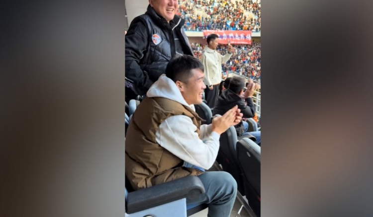 欢迎回家!记者:河南队钟义浩现场观战海牛,海牛进球后他很开心