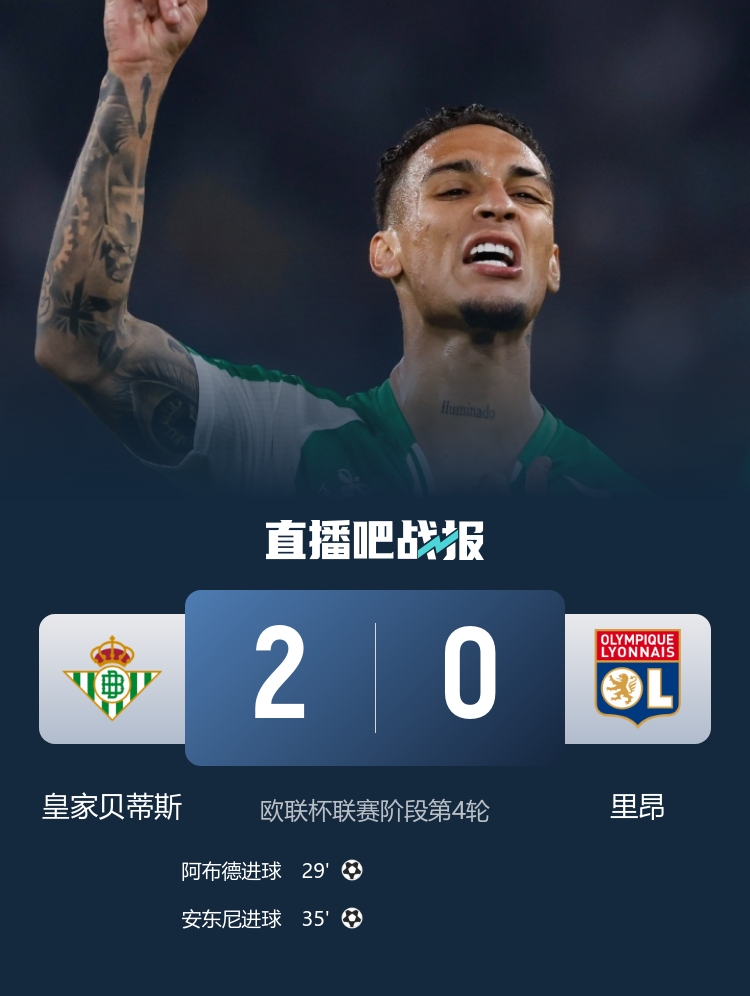 11月07日讯 欧联杯联赛阶段第四轮比赛,皇家贝蒂斯2-0战胜里昂,本场比赛贝蒂斯前锋安东尼打进一记精彩的挑射。