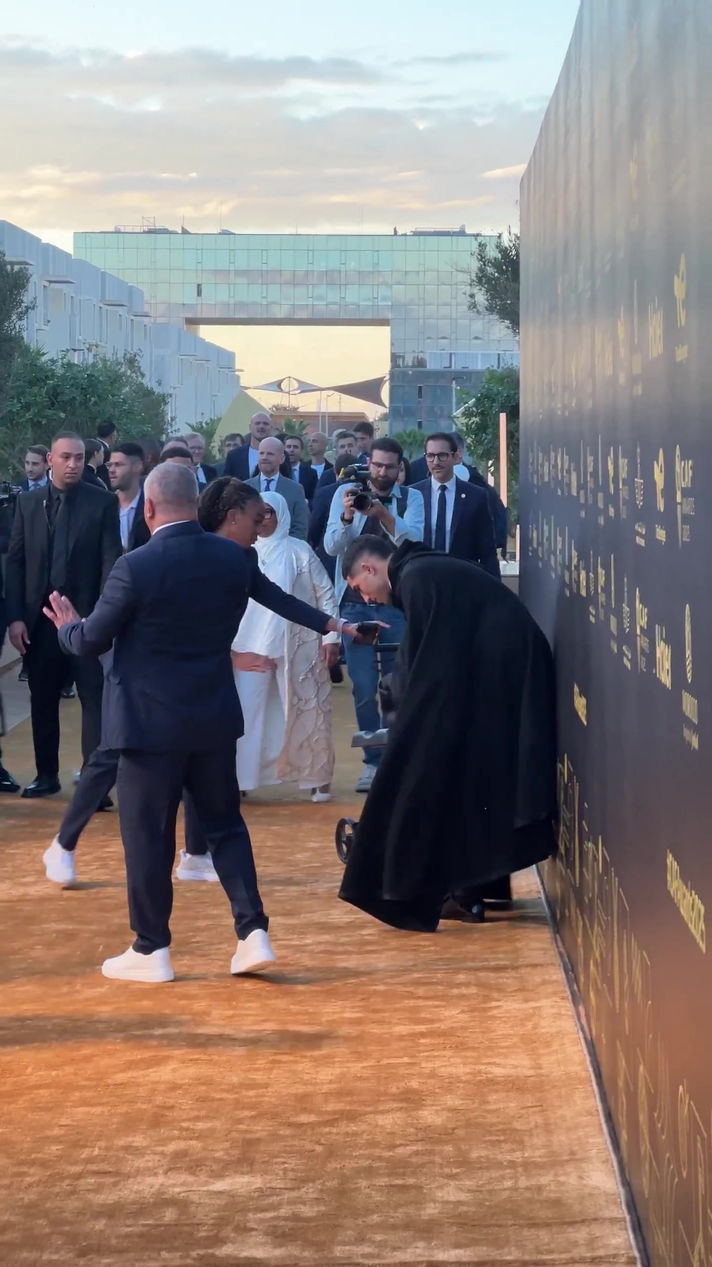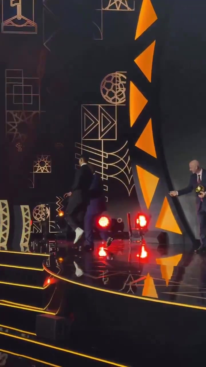 因为脚踝受伤,阿什拉夫前往颁奖典礼时带着助行器,他穿戴黑披风借着助行器行走,拍照和领奖时蹦蹦跳跳。