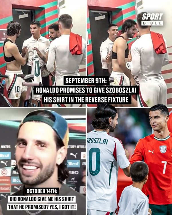10月15日讯 世预赛欧洲区F组第4轮,葡萄牙主场2-2战平匈牙利,C罗梅开二度,索博斯洛伊打入绝平进球。 比赛结束后,索博斯洛伊接受采访,被问及C罗有没有遵守诺言把球衣给他,索博斯洛伊开心地回答道:“是的,我拿到了!” 在此前两队首回合比赛结束后,索博斯洛伊就去更衣室找到C罗,希望与自己的偶像互换球衣,C罗收下索博斯洛伊的球衣,但表示自己的球衣已经换出去了,承诺回到主场将与索博斯洛伊互换球衣。 【相关新闻】偶像!索博赛后找C罗交换球衣,C罗承诺回到主场再给球衣......查看更多