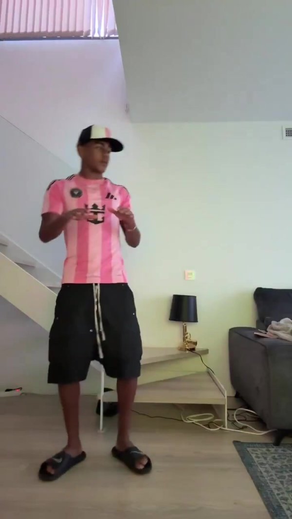 👀致敬?亚马尔社媒晒视频跳尬舞,身穿梅西的迈阿密国际球衣