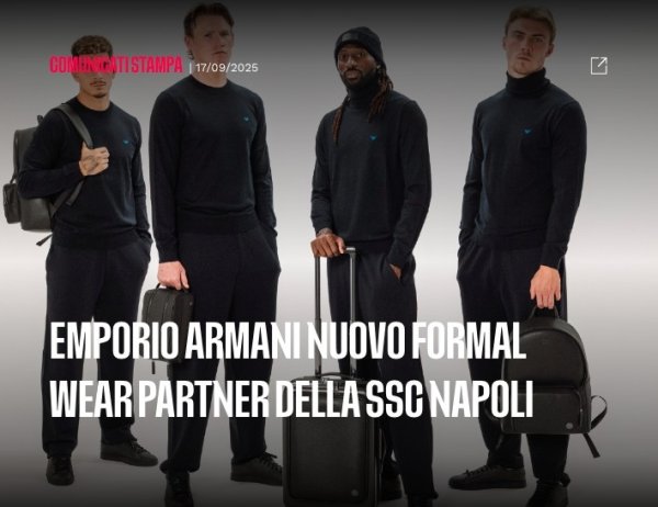 官方:阿玛尼成为那不勒斯正装合作伙伴