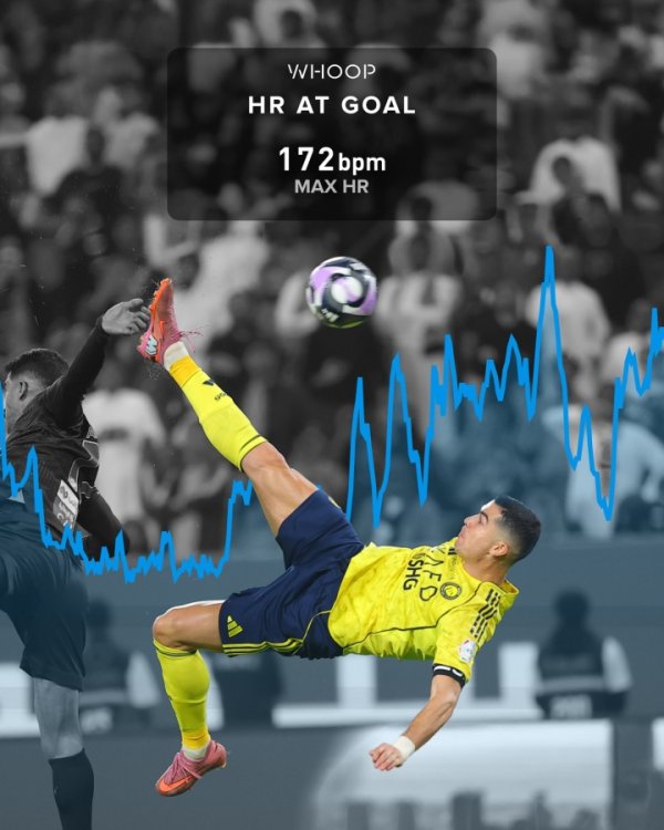 40岁还能精彩倒钩!健康监测设备:C罗倒钩时心率最高达172