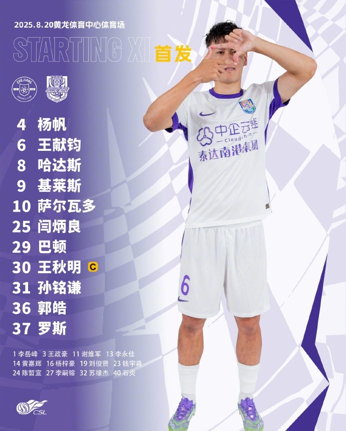 中超联赛第23轮客战浙江队,天津津门虎首发出炉!