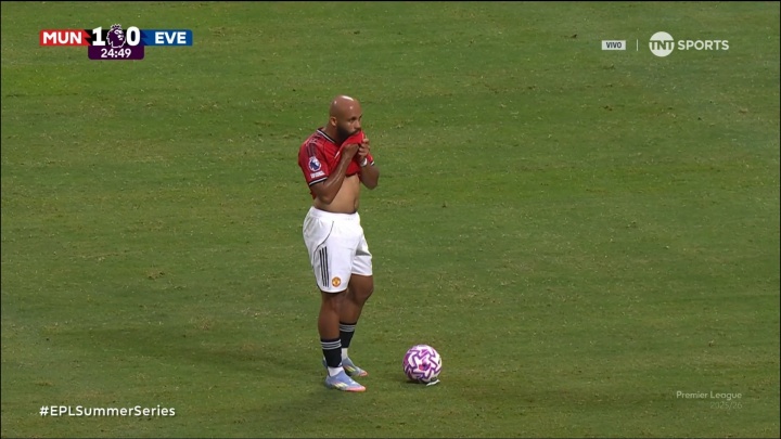 姆贝莫在季前赛代表曼联演出首秀,比赛中他被镜头拍到掀翻球衣露出上半身,球迷也对他的体魄发表了热议。