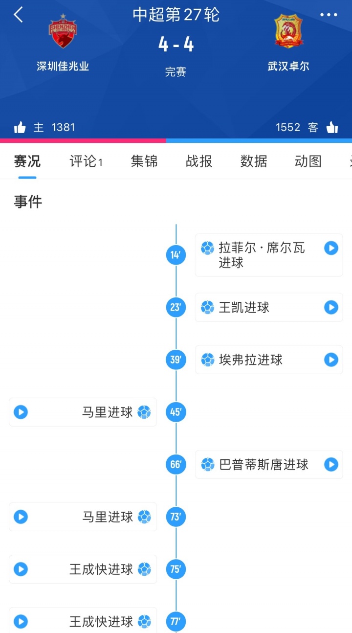 可是,深圳喜兆业队与武汉卓尔队的上半场比赛鸿沟,深圳0:3大幅度落伍,地方极其不利。“这技术两边俱乐部措置层的强力干预就来了,是以才有了下半场深圳队的惊天逆转。”这位知情东说念主士走漏。