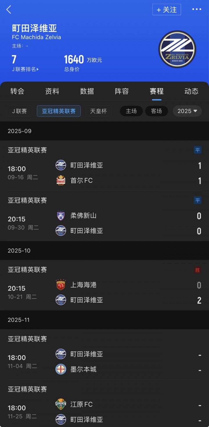 町田泽维亚上赛季排行J联赛第三,纵贯本赛季的亚冠精英联赛,这亦然他们队史初次参预亚冠。