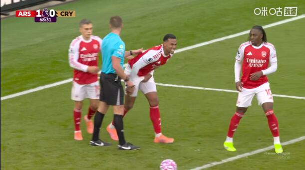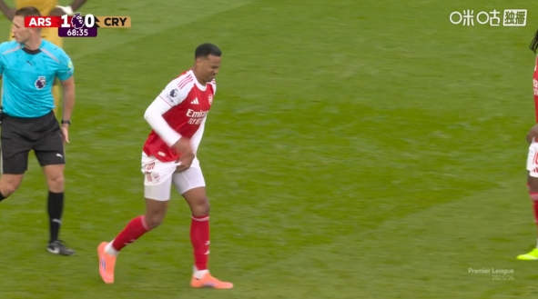 比赛第68分钟,加布里埃尔争顶时高高跃起后落地,下体重重撞上立柱。
