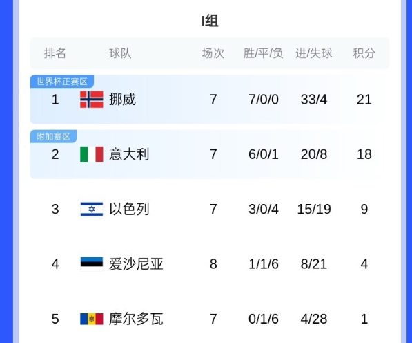I组的样式简易明了,挪威和意大利齐细目了插足小组前二。除非意大利以9球及以上上风打败挪威,不然挪威就将赢得小组第一纵贯天下杯。挪威上一次参加天下杯还要纪念到1998年,那时哈兰德还没竖立。