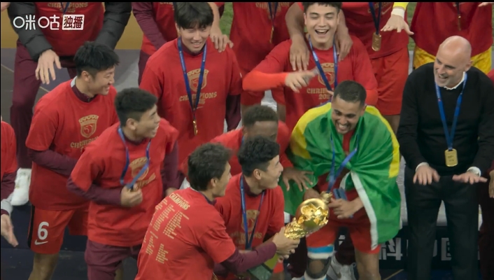 > 咱们是冠军🏆武磊、王燊超共同捧生气神杯,海港中超第4冠