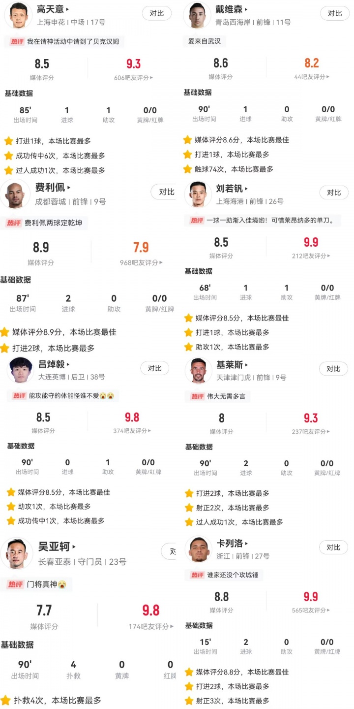 重磅开启中超每轮最好球员票选——岂论是锋线杀手的致命一击、中场群众的精准制导,已经铁闸般的钢铁防地,通盘高光本领由你见证!
