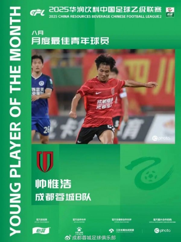 在2025华润饮料中乙联赛中,成都蓉城B队的小伙子们以13胜7平6负的获利暂居争冠组第4名!李漠雨、廖荣祥两位小将跟班一线队在中超赛场取得进球,艾孜买提-凯萨尔、王玥珩、帅惟浩等球员入选一线队亚冠精英联赛大名单,展现出俱乐部青训的亮眼服从! 在本年8月份的赛事中,成都蓉城B队以2-1征服南通海门珂缔缘,小将帅惟浩独中两元进展优异,在客场逼平山东泰山B队的比赛中,帅惟浩也以灵动的带球打破劝诱着球迷们的眼神。在本年的联赛中,帅惟浩从一个初出茅屋的青涩小伙速即站稳脚跟,近期都集拿出......查看更多