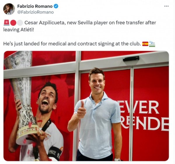 罗马诺:36岁阿斯皮利奎塔将免签加盟塞维利亚,已抵达收受体检