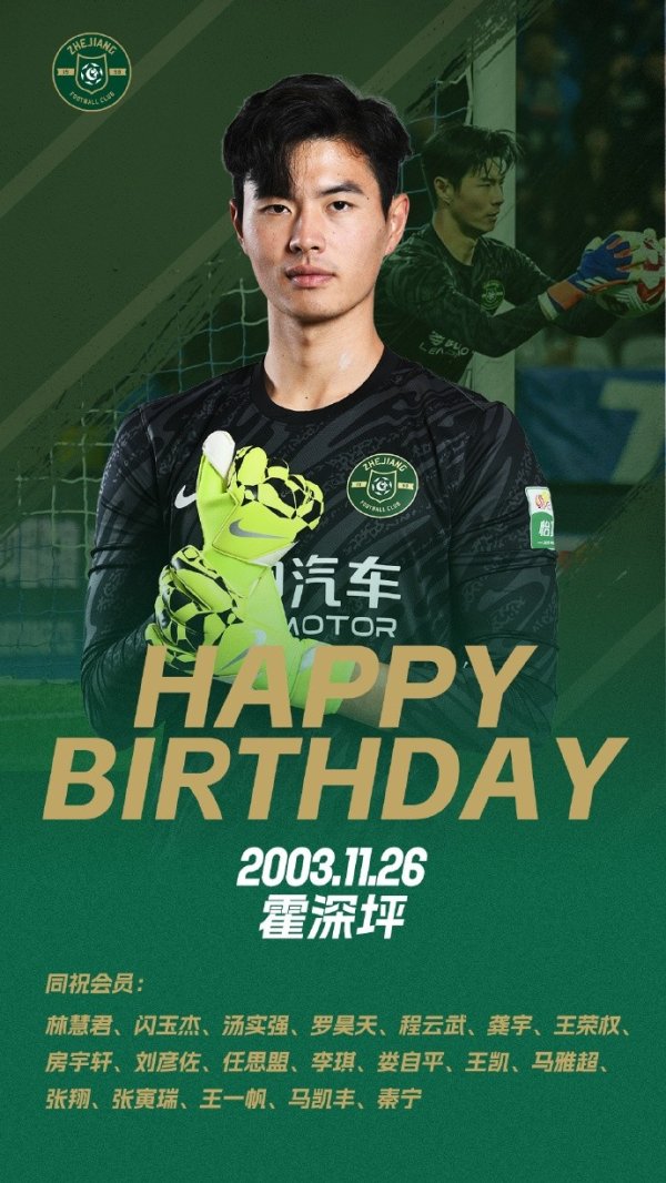 浙江队祝霍深坪22岁诞辰快意,球员本年加盟共出战4场比赛
