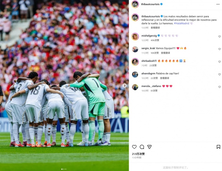 门将库尔图瓦也在社媒晒出合照饱读吹球队,配文写谈:“恶运的效果应该成为反念念自我的机会,濒临不毛景观咱们应该找回最好状况扭转款式。咱们省略作念到的。”