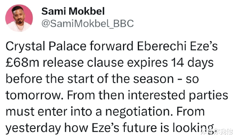 在此之前,阿森纳依然买了马杜埃凯、莫斯克拉和哲凯赖什等新援,球队举座实力有了昭着普及。不外在阿森纳阵中,还有一个昭着短板,那便是左边锋。比较右路有萨卡+马杜埃凯2东说念主可用,阿森纳的掌握唯有特罗萨德和马丁内利,这2东说念主王人不是顶级边锋,其中特罗萨德还很可能在夏窗离队,因此引进又名左边锋,是阿森纳的重中之重,而埃泽便是阿尔特塔的计算。