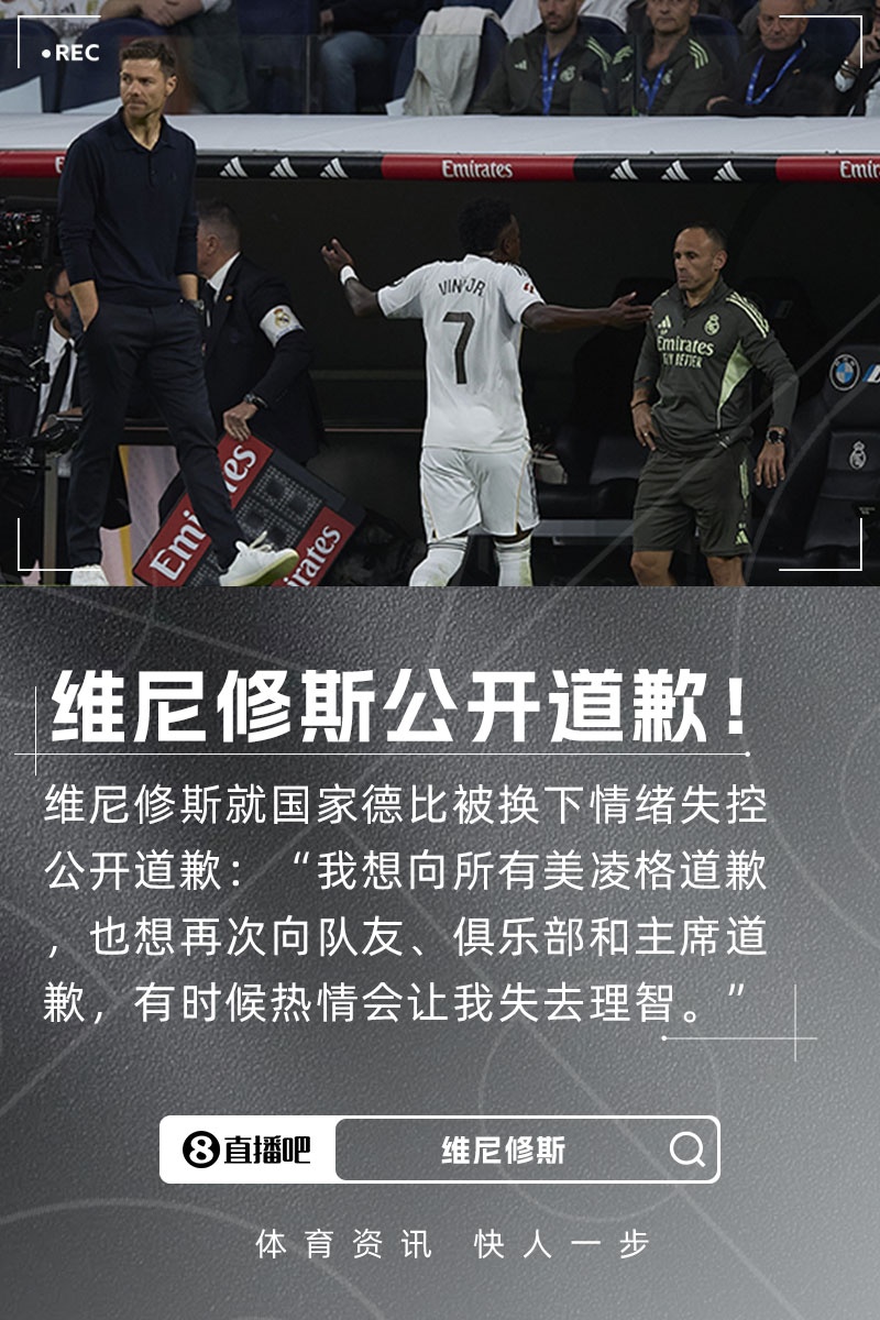 维尼修斯不悦我方在国度德比中被换下,敌视之下致使示意要离队。球员依然在酬酢媒体上谈歉,但并莫得提到主帅阿隆索。