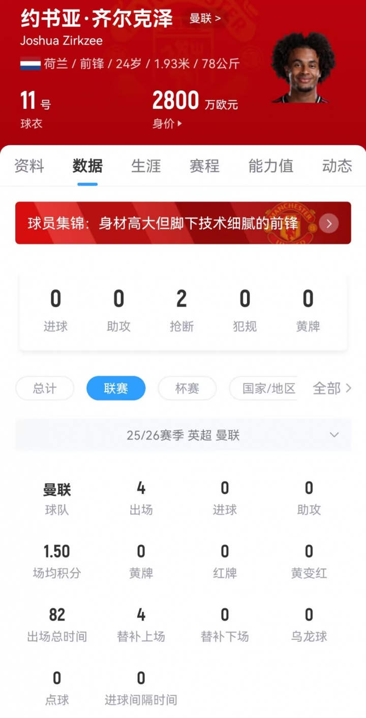 24岁的王人尔克泽客岁夏窗以4250万欧元价钱从博洛尼亚加盟曼联,本赛季为曼联在联赛出场4次,还莫得进球或助攻。此前有报说念称他冬窗有望离队,回到意甲。