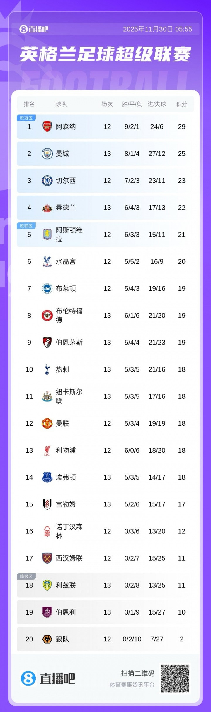 英超积分榜:曼城暂升第2,热刺4场不堪第10,来日切尔西vs阿森纳