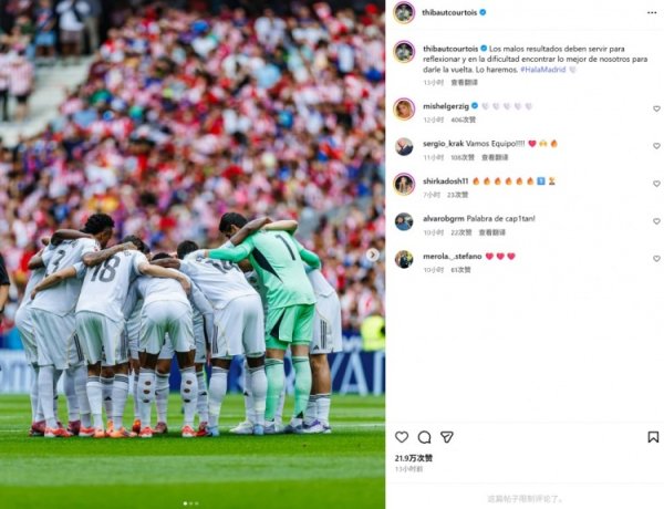 9月28日讯 在本轮西甲,皇马2-5不敌马竞。 门将库尔图瓦也在社媒晒出合照饱读吹球队,配文写谈:“恶运的效果应该成为反念念自我的机会,濒临不毛景观咱们应该找回最好状况扭转款式。咱们省略作念到的。”......查看更多