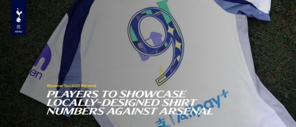 对阵阿森纳热身赛热刺将穿定制球衣,展示东西方好意思学会通