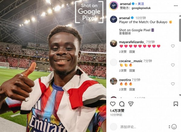 打入惟一进球,官方:萨卡当选阿森纳1-0AC米兰全场最好