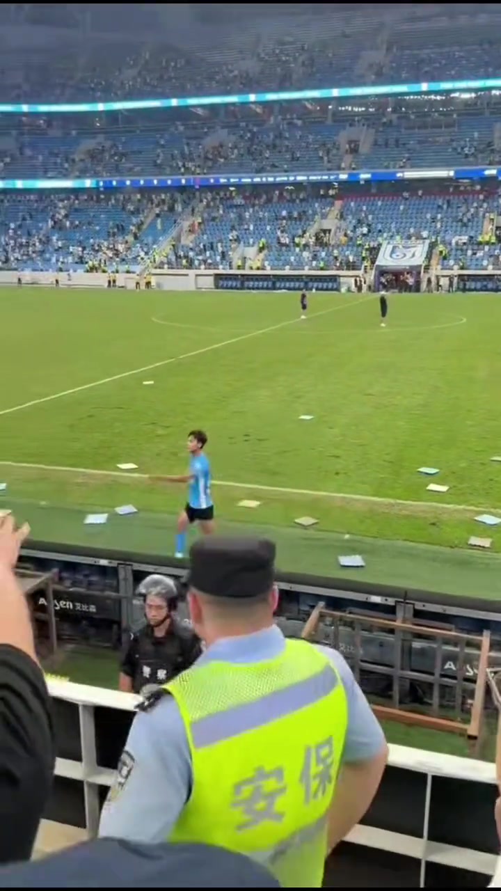 凭据现场拍摄画面,有厚谊欢快的球迷跳下看台。
