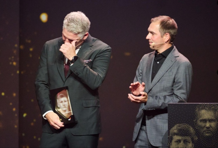 在庆典上,施魏因施泰格潸然泪下,他说说念:“粗略取得如斯招供关于我而言意旨超卓。”施魏因施泰格的前队友托马斯-穆勒通过视频奉上了祈福,而他的另外一位前队友拉姆则为他颁发了奖杯。